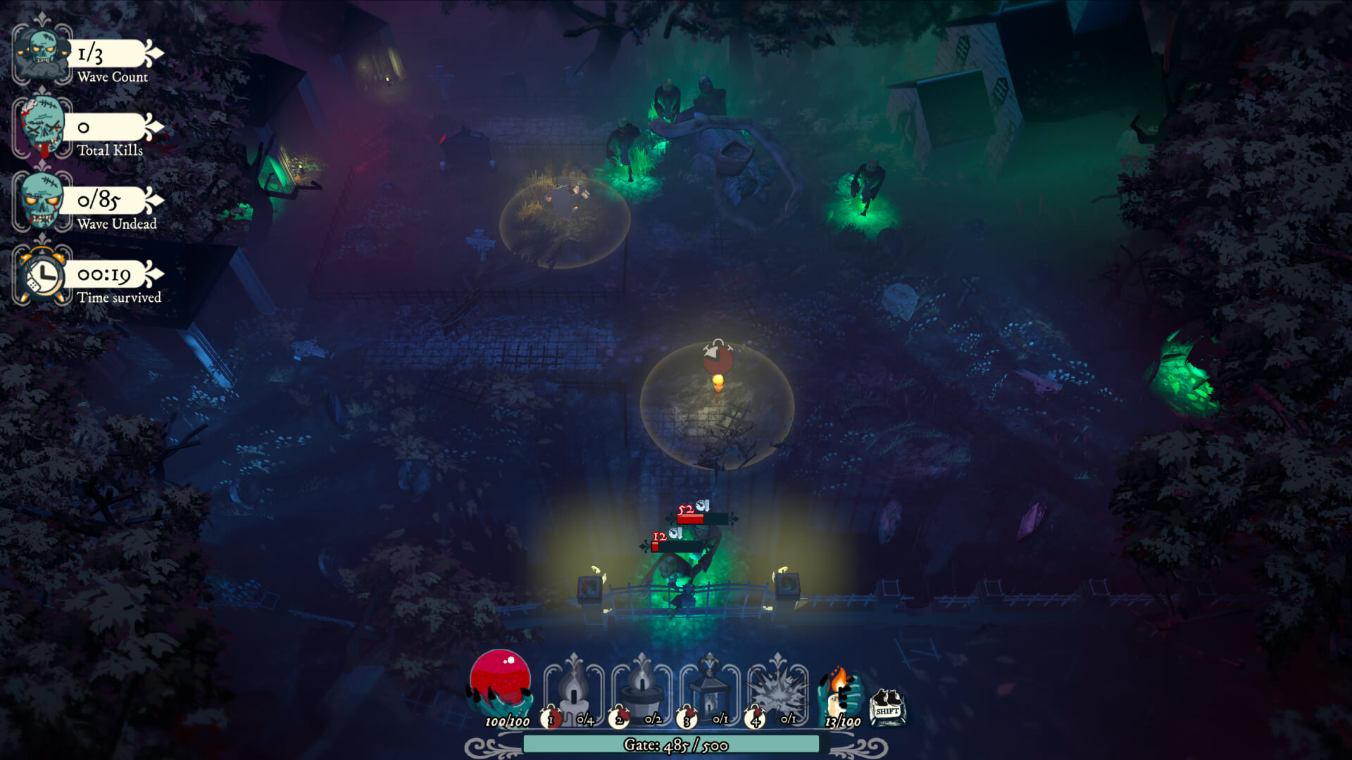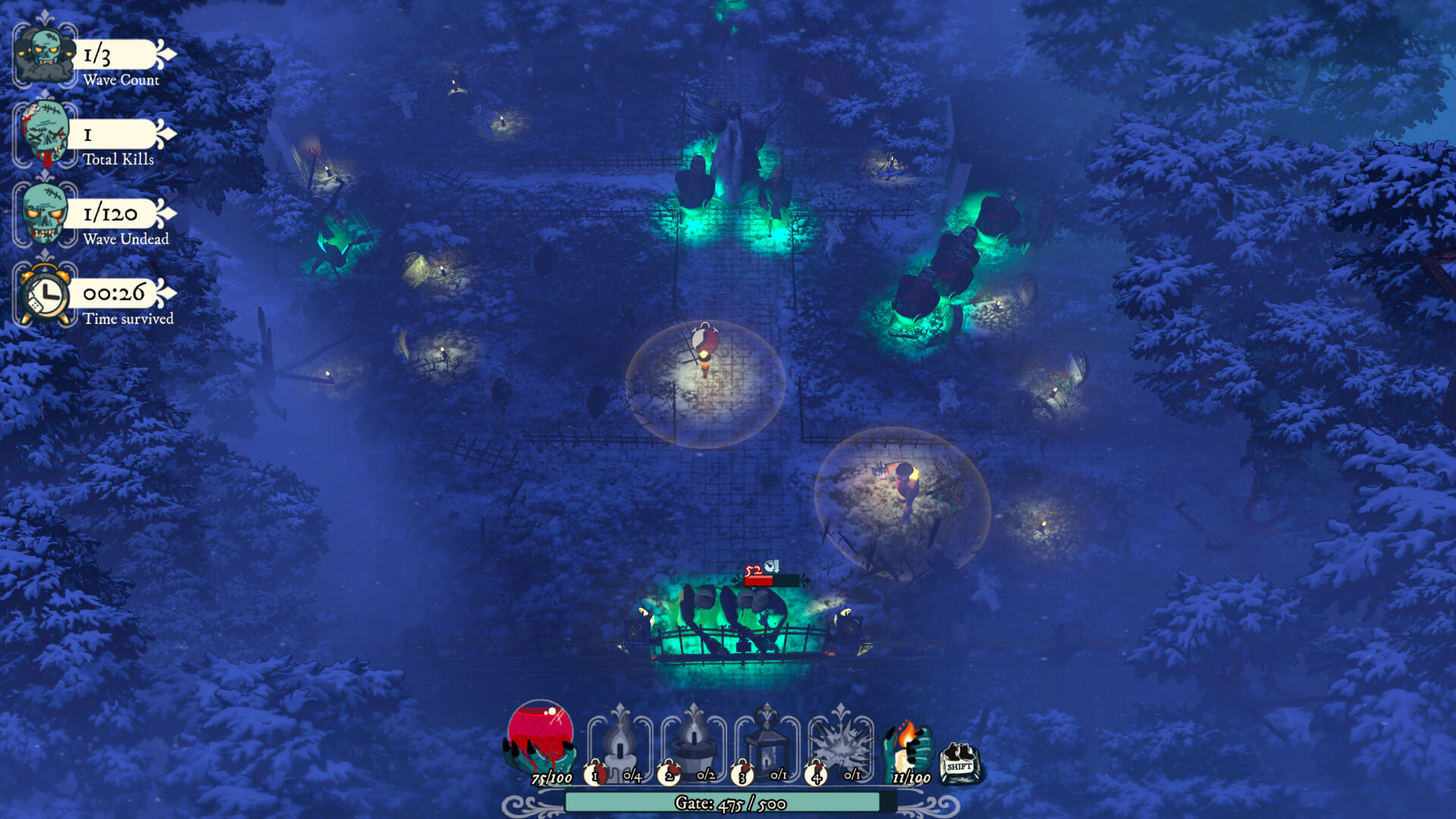 A top-down strategy action game set in a haunted graveyard. You play the Graveholder, protector of a cursed cemetery where the undead rise each night and march toward the gate. Your task is simple: hold them back. Armed with sacred light, you defend against relentless waves of the undead.