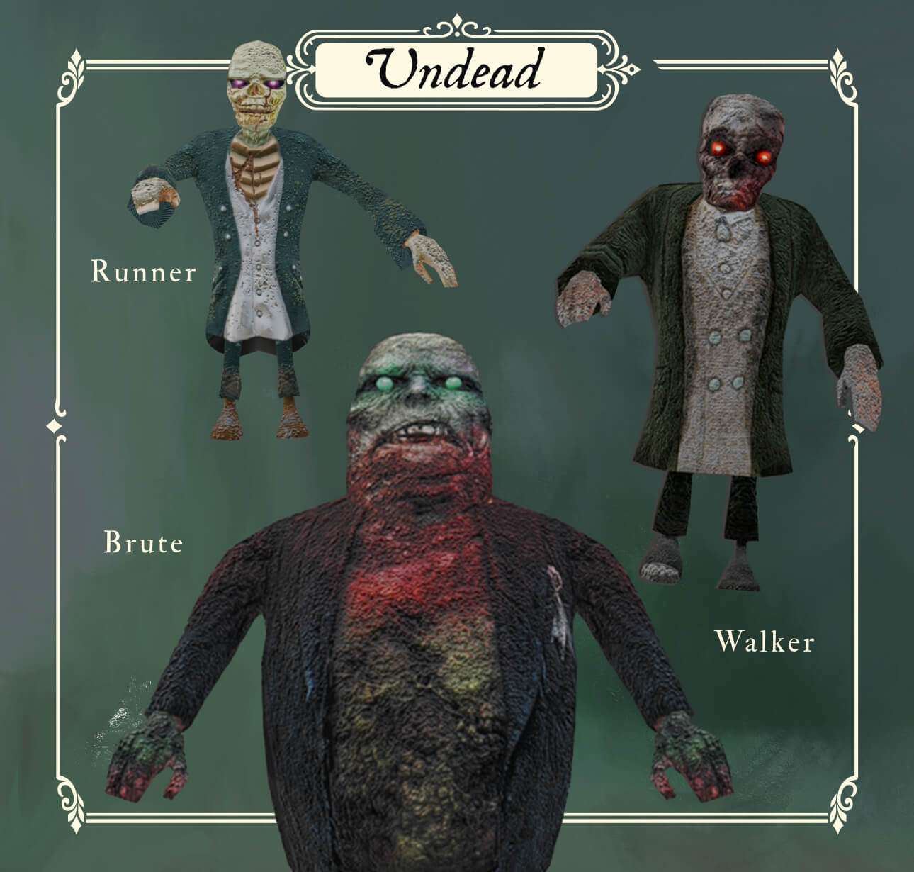 Each night, the dead rise from their graves. The cemetery is haunted by various undead, each with its own behavior and threat. Walkers move slowly but relentlessly, pushing forward step by step. Runners are fast and aggressive, rushing toward the gate without hesitation. Brutes are massive and brutal, powerful creatures that will try to break through your defenses. All of them share one goal: To escape the cemetery. And they will do everything they can to reach the gate.